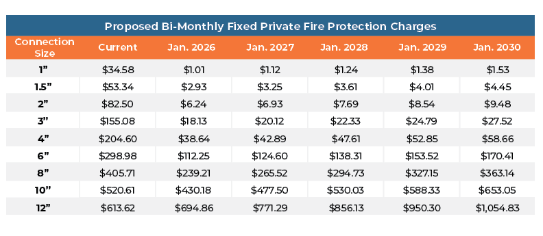 This charge is only for customers with private fire service lines, and is based on the size of the private fire service line.