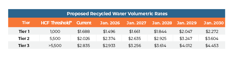 If approved, starting with customers’ next water service cycle on or after January 14, 2026, a typical single-family household with a 5/8” meter using about 9,000 gallons per month* would pay about $14.91 more each month (included on the bi-monthly bill as $29.82 more) under the proposed rates. Smaller increases can be expected each year through 2030.
