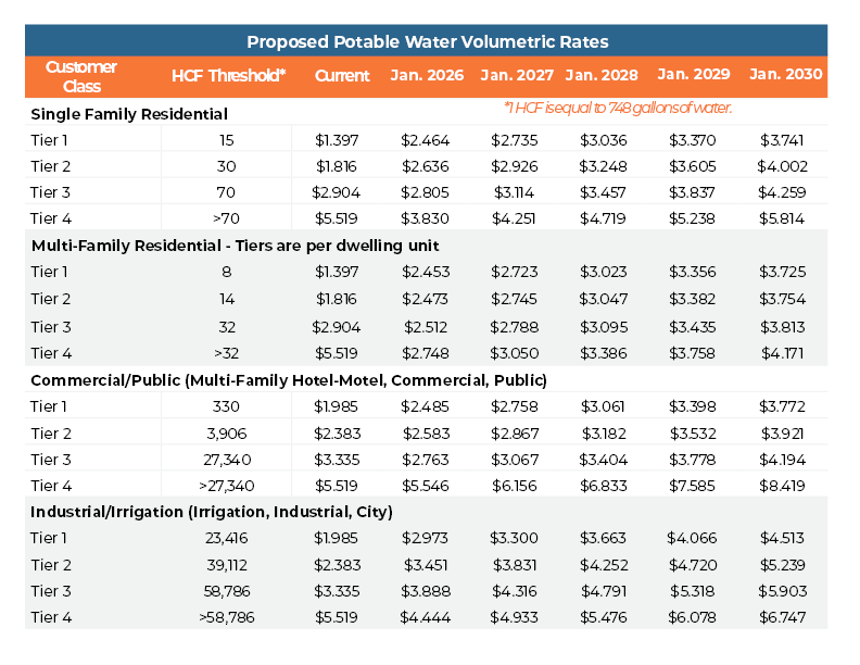 The City Council will consider adopting the recommended rate changes at a public hearing on January 13, 2026, at 6:30 p.m. Before final rates are adopted, residents will have the opportunity to share feedback or file formal protests and/or objections.